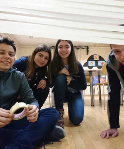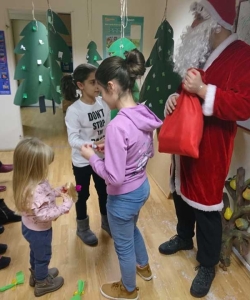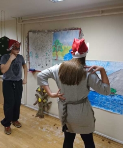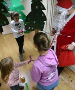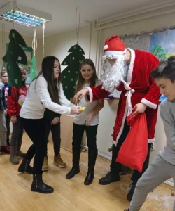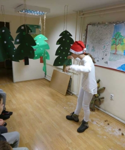Đaci 7. razreda odlučili su da naše najmlađe obraduju šaljivom predstavom ’Grozon’ nakon čega nas je posetio i Deda Mraz. Nešto stariji đaci su uživali u novogodišnjim zgodama i nezgodama Mr. Bean-a, a najstariji su se takmičili u timskim aktivnostima- gradili su kule, pleli mreže i tražili srodne duše.