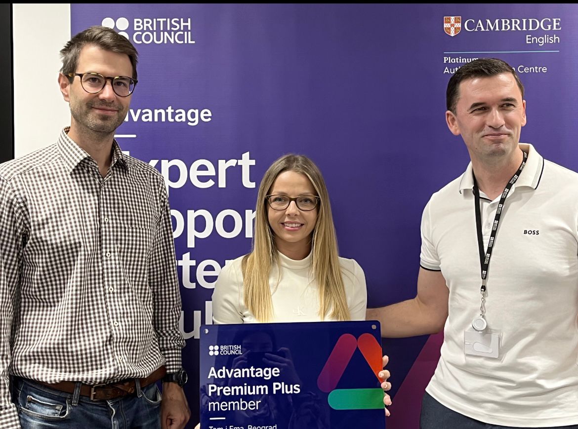 Britanski savet <p class="galerija-tekst">Dodela našoj školi Cambridge platinum diplome za uspešnu saradnju sa Britanskim savetom u organizaciji ispita.</p>